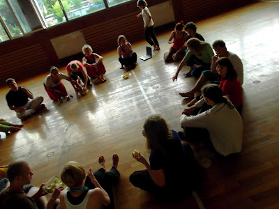 Verbindung da, auch mit leuten, mit denen ich nicht getanzt habe. Sehr schön. Wir haben so körperlich getanzt. Unglaublich. Das ist was Anatomisches, wie organisiert sich das? Ich habe Eindruck, ich kann reinspüren. Meine Ohren gingen auf, meinen Atem hab ich gehört, als würd ich in mir drin sitzen. Als wäre ich drin in der Anatomie. Das war ganz besonders diesmal.